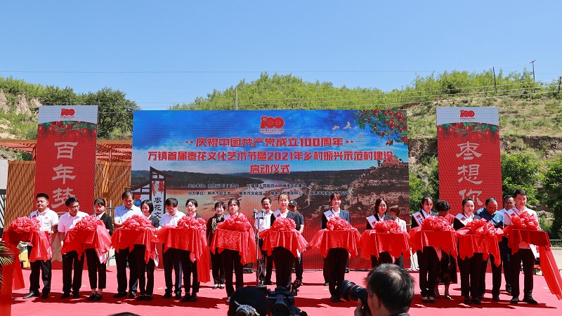 6月19日,神木市万镇首届枣花文化艺术节暨2021年乡村振兴示范村建设启动仪式在曼乔红枣科技园隆重举行。神木市人大常委会主任杨晓琦宣布万镇首届枣花文化艺术节暨2021年乡村振兴示范村建设正式启动,并与陕西省摄影家协会主席冯晓伟,神木市委常委、宣传部部长毛晔,市委常委、人武部部长马智磊,市政府副市长孟向平、苏晓洁,市政协副主席李淑梅等一起为文旅融合发展示范项目——黄河驿站开业剪彩。